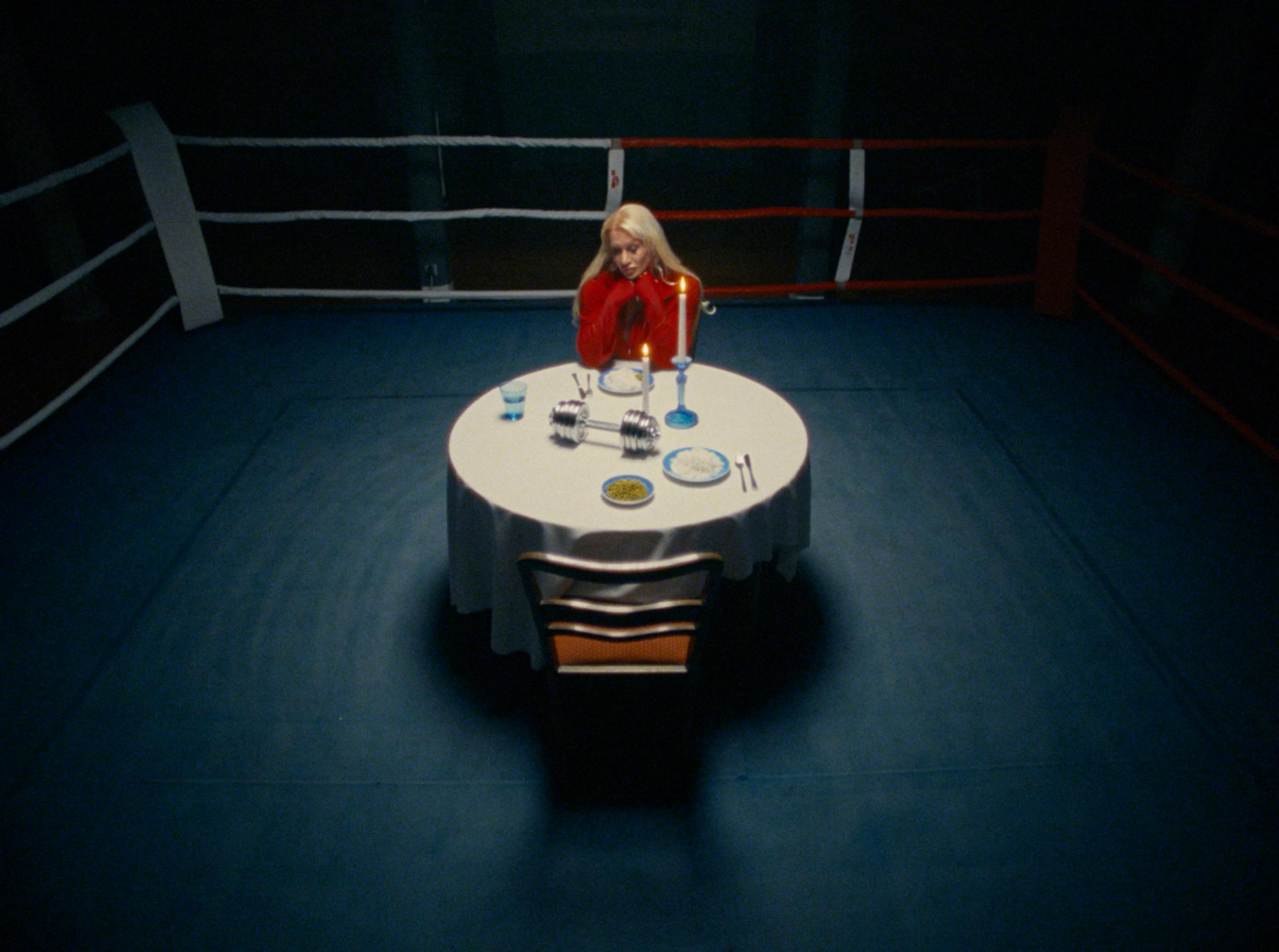 The idea was not to shoot a usual video for another love song but to create an unusual love relationship between a bodybuilder and her dumbbell.